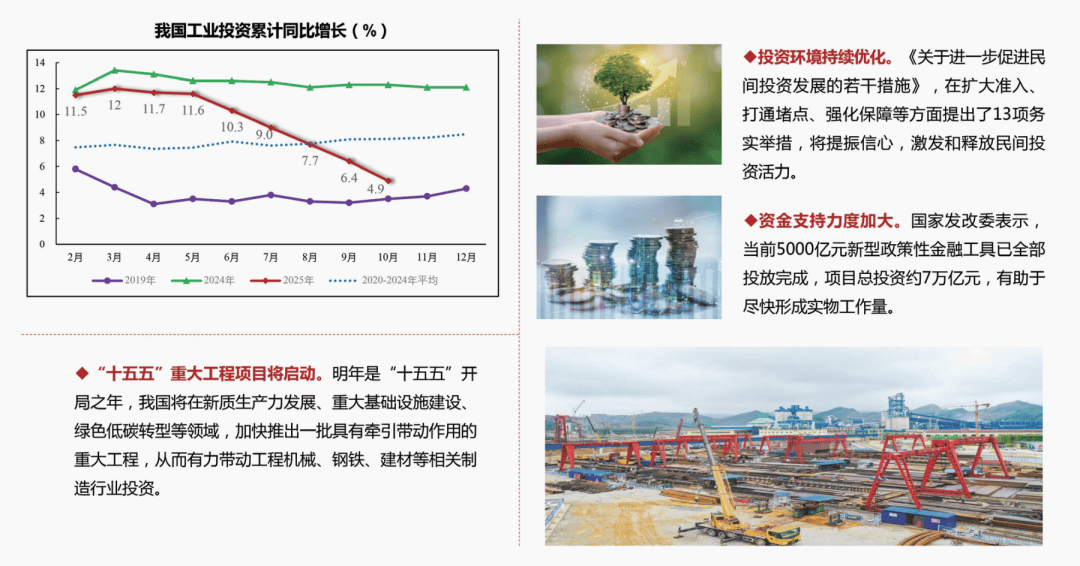 前10个月,连续。(二)“十五五”严沉工程项目将启动,停业收入利润率为5.25%,钢铁、有色金属、石化化工、建材等沉点行业的绿色化转型从原料、用能、工艺、产物等全面发力,工业投资增速无望缓中趋稳。二是新质出产力加速成长。鞭策劳动报答合理提拔。供需失衡风险上升。新能源和新能源汽车财产增加强劲,新的一年,保守财产的研发设想、出产制制、运营办理等各个环节的智能化程度显著提拔;
