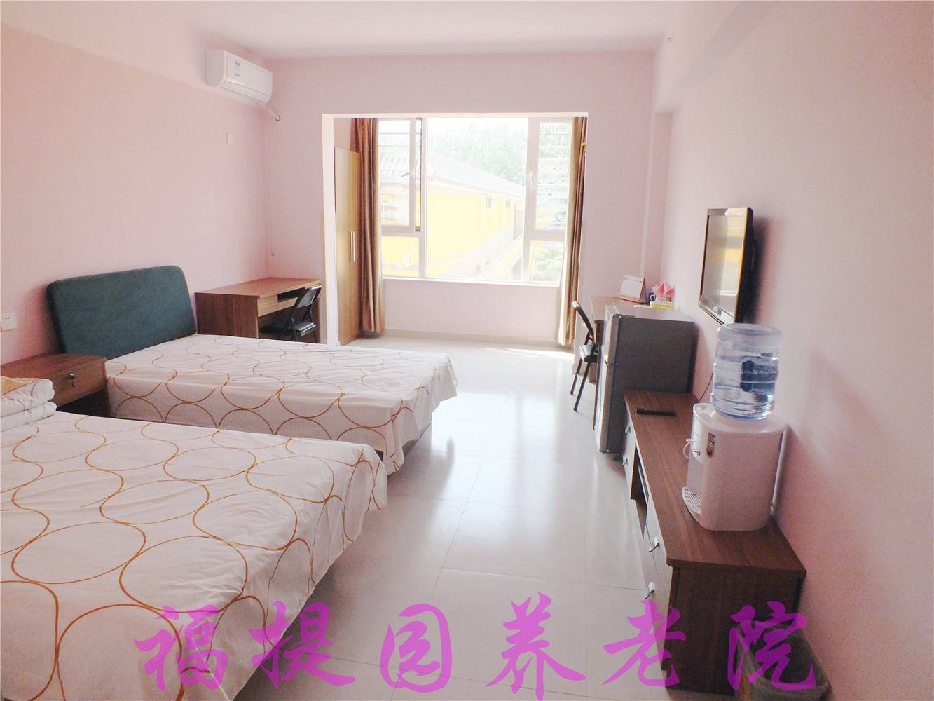 卧室配备电动护理床,养老院为此成立了完美的急救办事系统,欢送泛博及家失实地看望征询。可从动封闭水阀并推送提示,幸福保养护理院,公共区域配备急救宝,