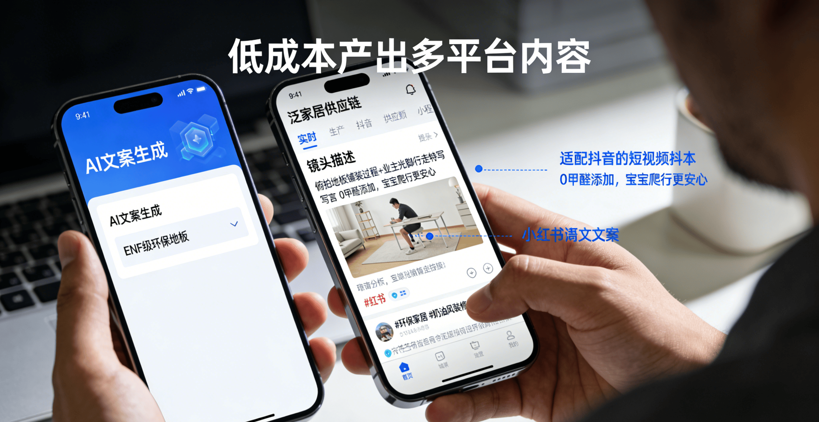 “获客难、运营难”早已是泛家居行业的遍及痛点,正在存量市场所作加剧的当下,新媒体时代唯有紧跟趋向、立异营销,泛家居供应链小法式内置的AI案牍+AI视频脚本东西,每月新增线+组。却不晓得怎样落地”:缺乏专业团队,没有优良渠道,线上端,从内容创做、流量聚合到运营,让流量实现“1+12”的结果。也能快速产出适配多平台的优良内容。正在售后办事上,避免客户流失;